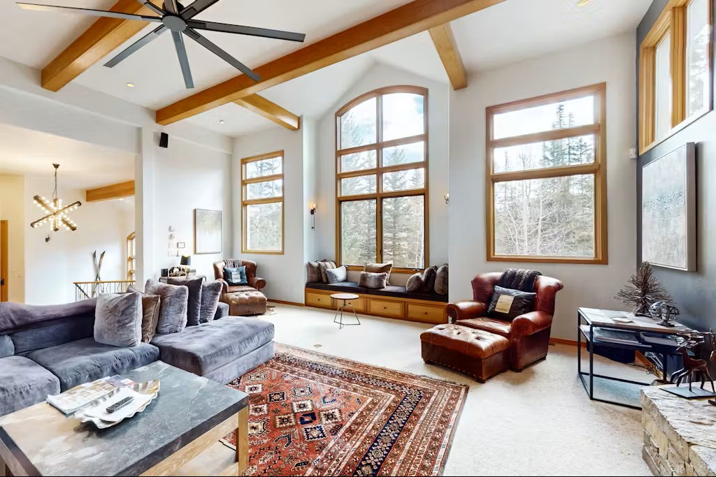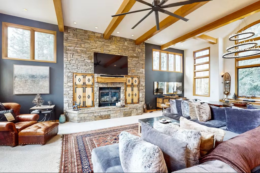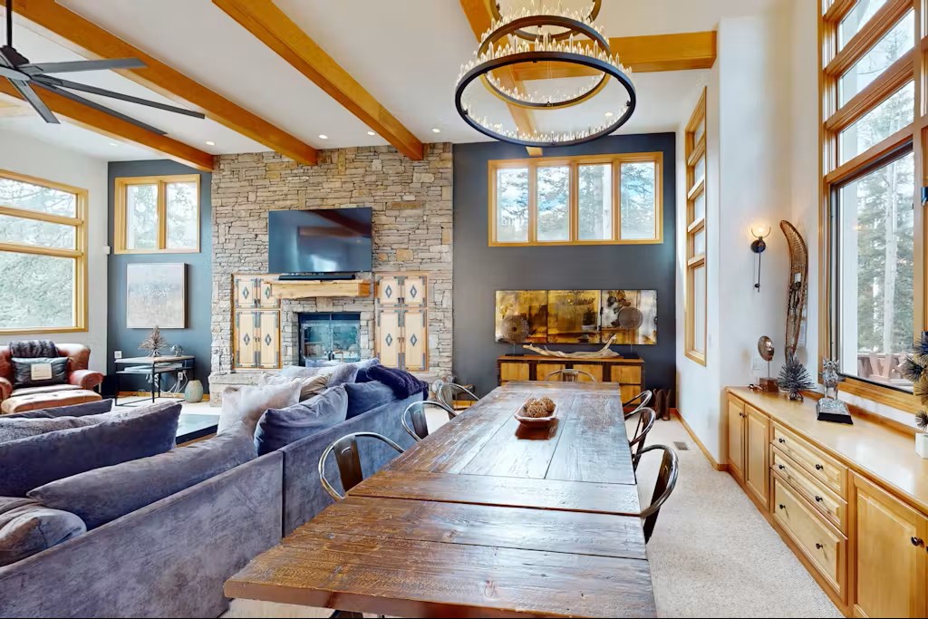 Welcome to 244 Benchmark Drive—your private, mountainside retreat just steps from the Galloping Goose ski run. This A+ ski-in/ski-out home offers effortless slope access along a flat trail and a spacious layout designed for both comfort and connection. Inside, you’ll find a soaring great room with vaulted ceilings, exposed beams, and a striking floor-to-ceiling stone fireplace. The open-concept living space flows into a large kitchen with breakfast bar seating, a large dining area, and a generous pantry and laundry room.