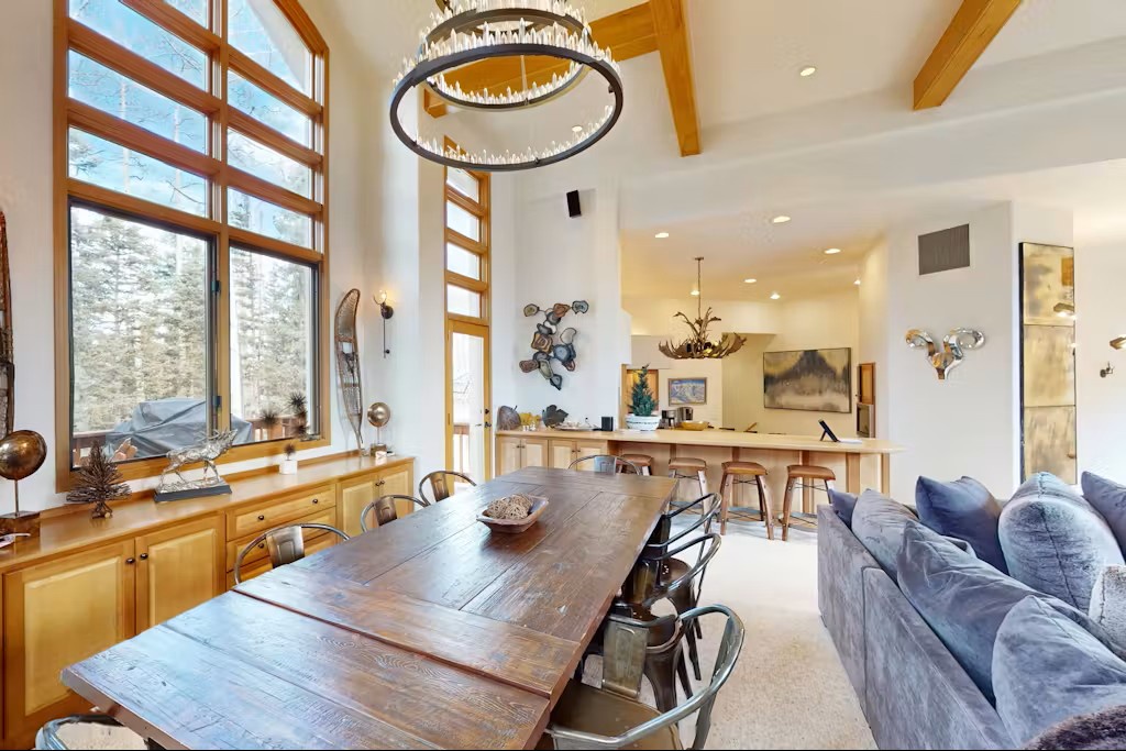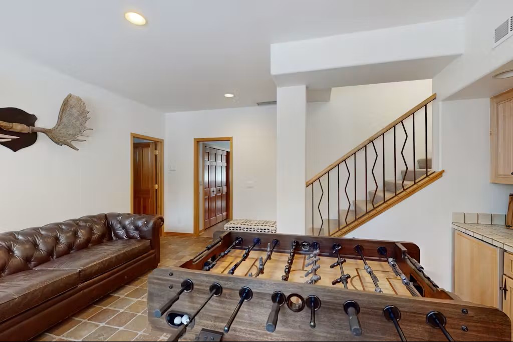 Perfect for groups or extended families, the home features four king suites and one additional guest room, each with its own private bath. After a day on the mountain, head downstairs to the game room...complete with a foosball table, wet bar, and direct access to the private hot tub deck. Upstairs, a private suite with sitting area and its own outdoor deck offers a quiet escape.