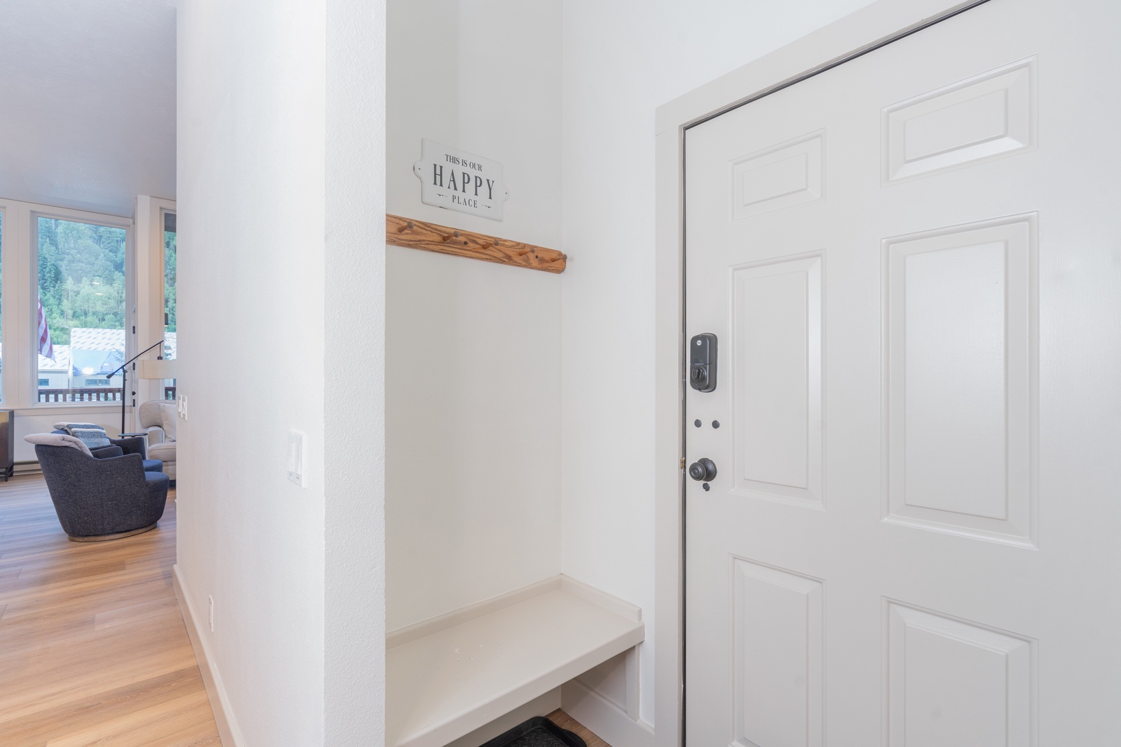 Step inside and you’re greeted by an airy, open-concept living space filled with natural light and clean, modern décor. The inviting living room centers around a cozy gas fireplace, with oversized windows that frame the dramatic peaks beyond—offering the perfect spot to unwind after a day of adventure.