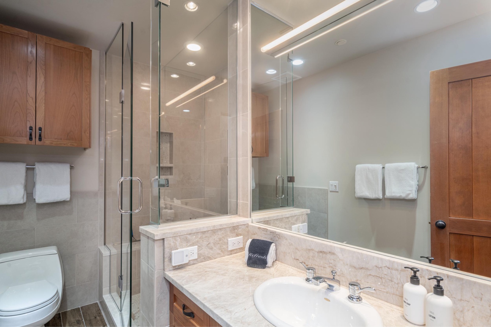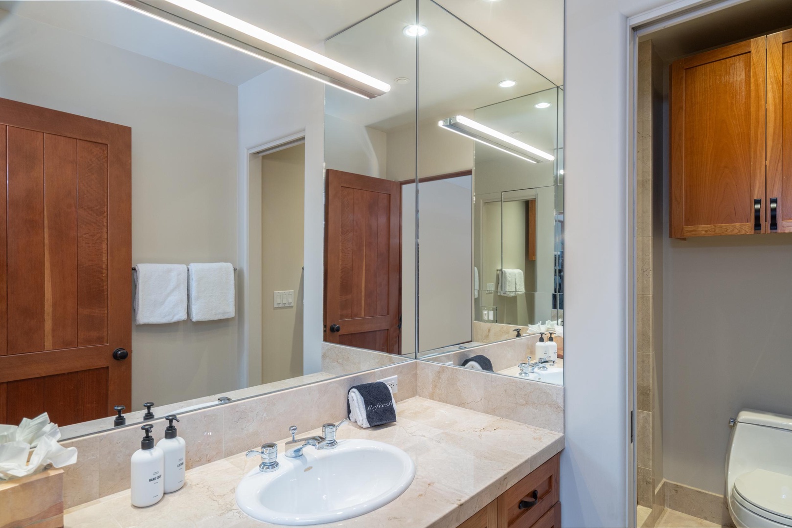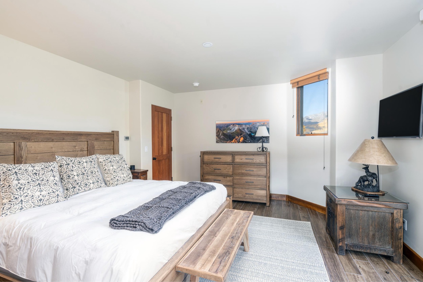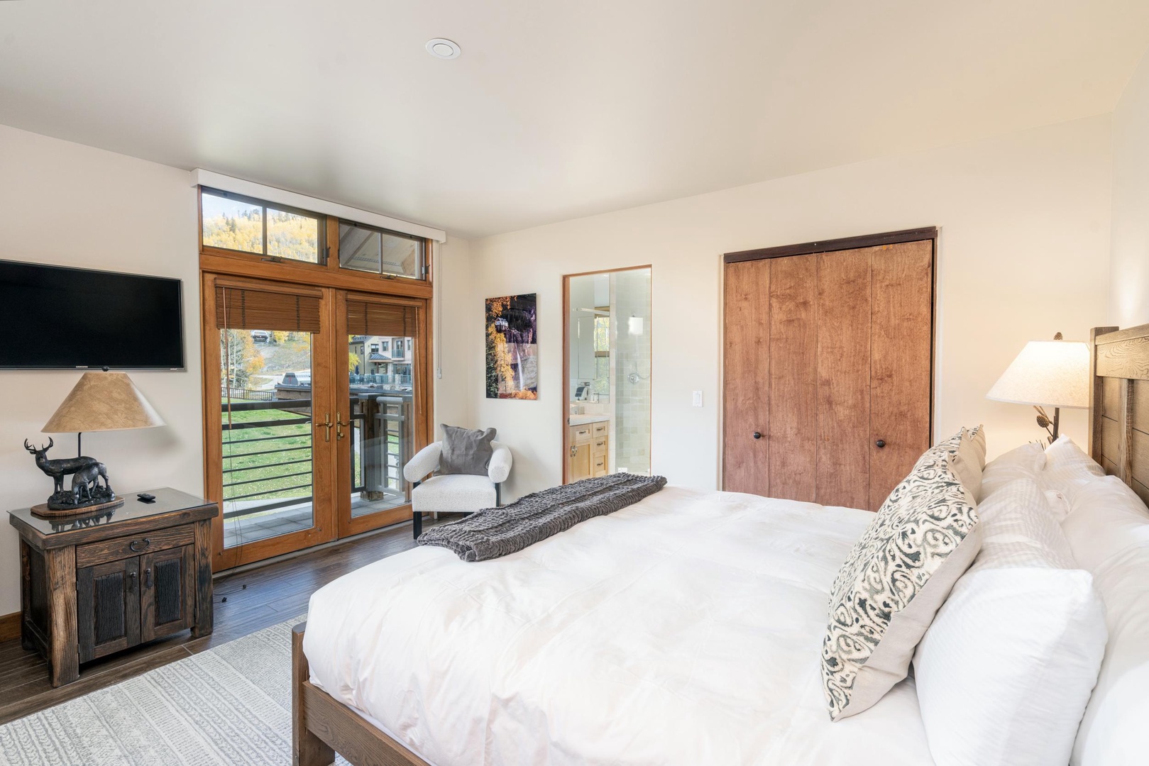 After a day of skiing, hiking, or exploring, retreat to one of three comfortable bedrooms, each offering plush bedding and private bath access for an ideal balance of privacy and togetherness.