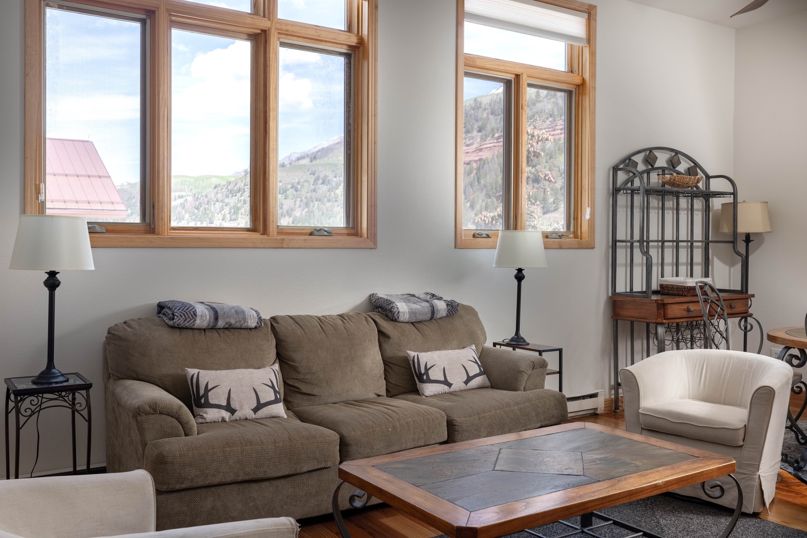 Welcome to Lulu City Unit #5G, a mountain escape, perched on the top floor of the Lulu City complex in the historic Town of Telluride. With two bedrooms, two bathrooms, and room to sleep six, this warm and welcoming 3rd-floor walk-up offers the perfect home base for your alpine adventures—whether you're in town for the vibrant summer festival season or the powder-filled winter ski season.