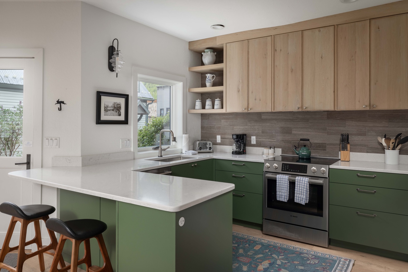 Welcome to Twin Bricks, a beautifully renovated townhome tucked into a charming historic building on South Oak Street—just one block from both the gondola and Telluride’s vibrant Main Street. This thoughtfully updated home blends modern comfort with eclectic style, offering a cozy retreat in an unbeatable location.