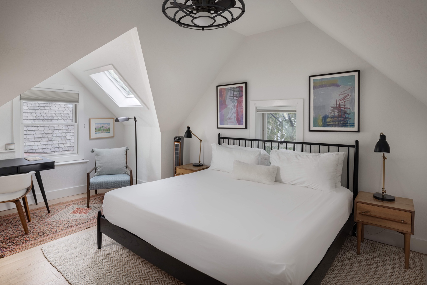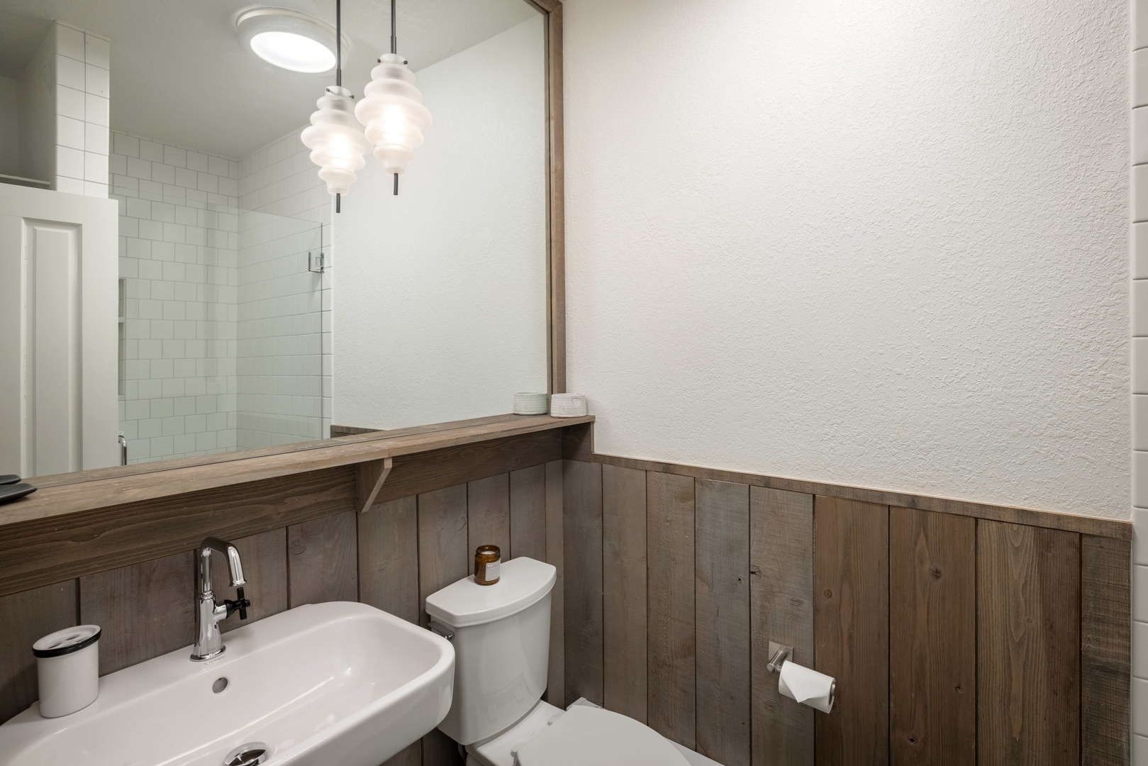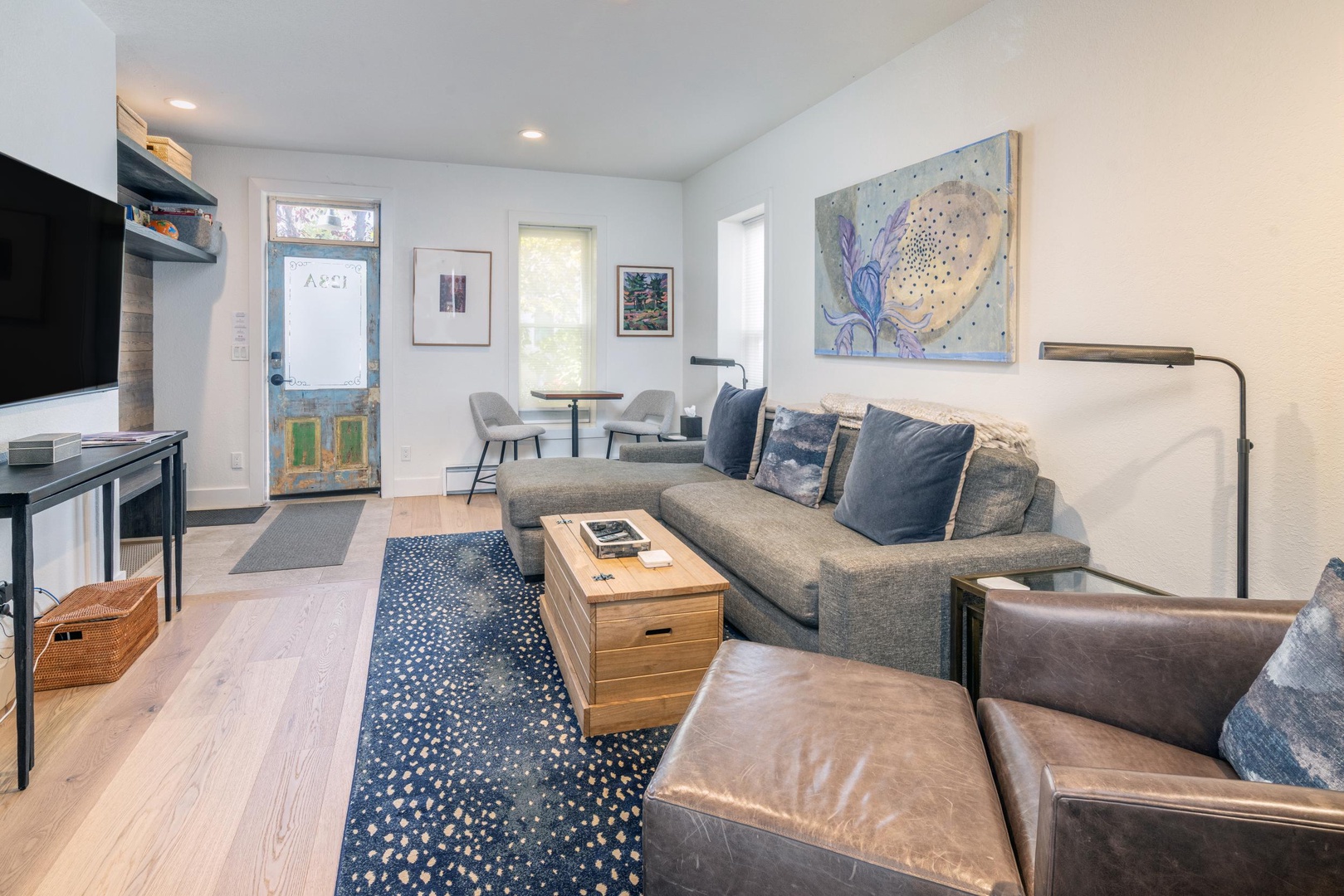Step inside to a warm living area with a flat-screen TV, Apple TV, and SONOS sound system. Watch skiers cruise by in winter or take in the summer buzz of the farmers' market right outside your door. The open-concept kitchen and dining nook are fully equipped for easy meals at home, and a full bathroom with walk-in shower rounds out the main level.
