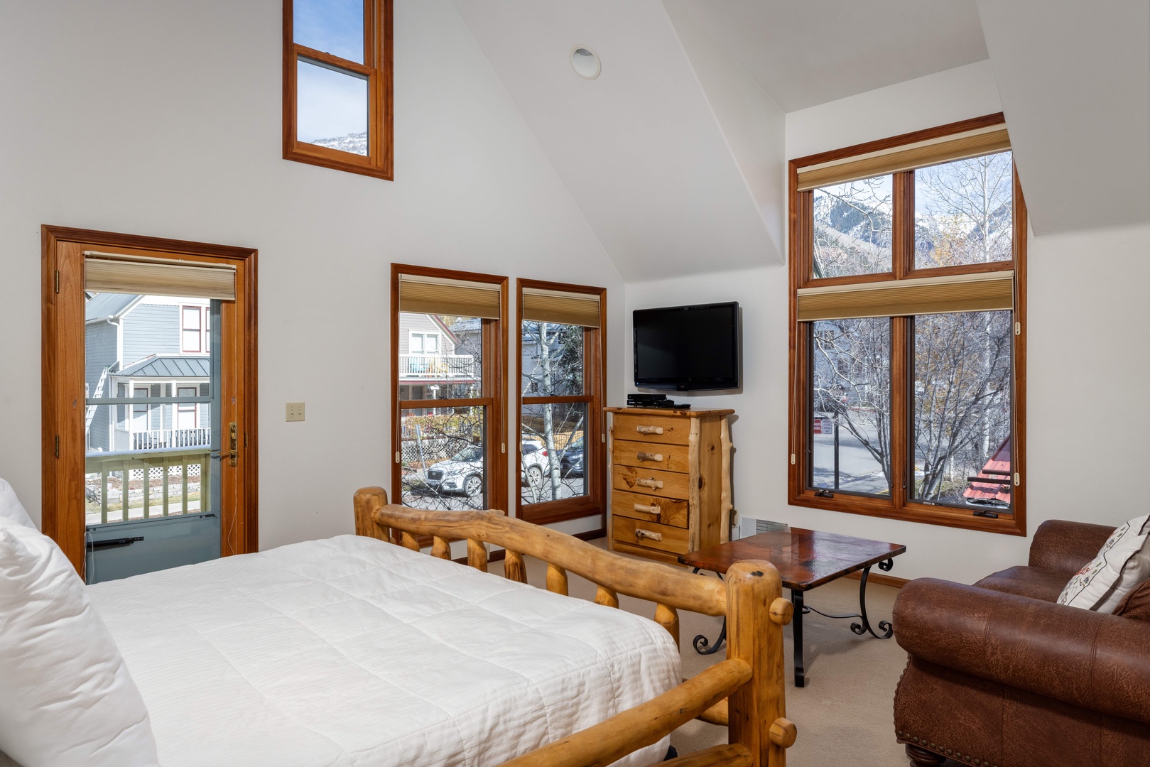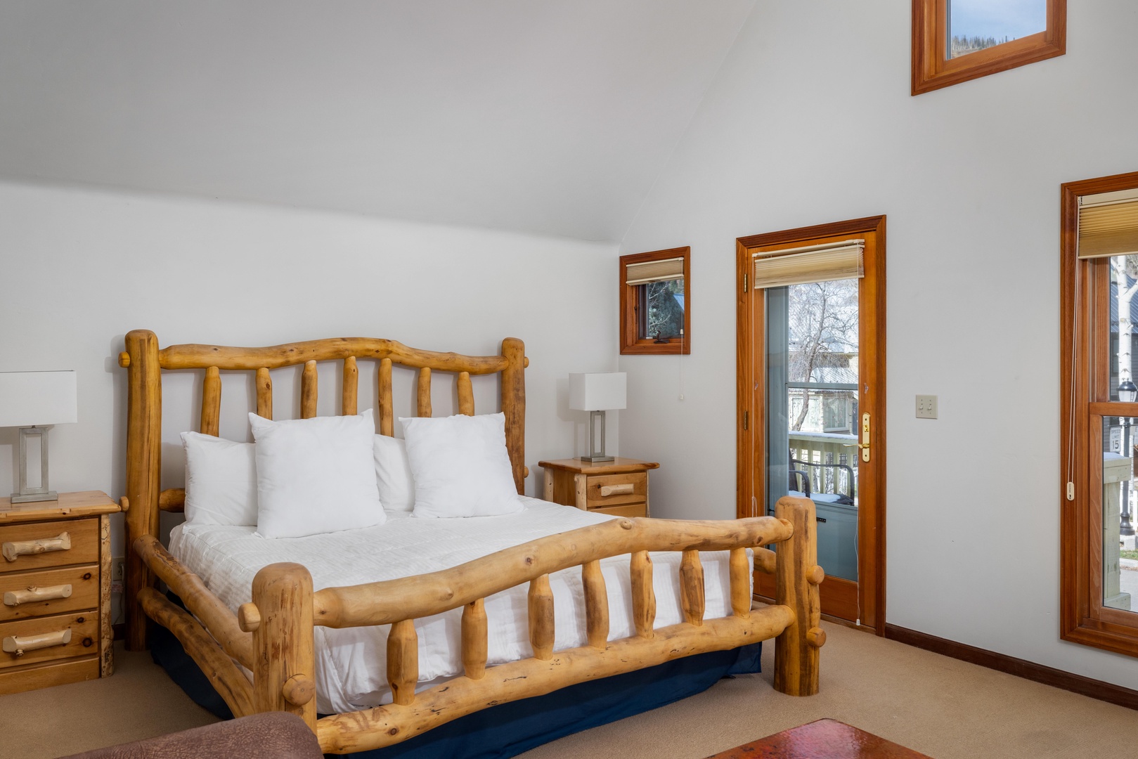 Primary Bedroom - King bed, en suite bath and vaulted ceilings