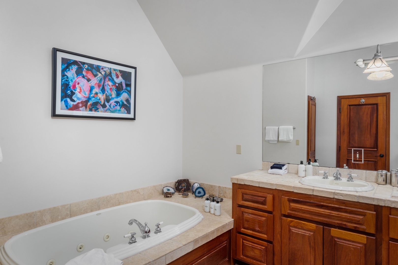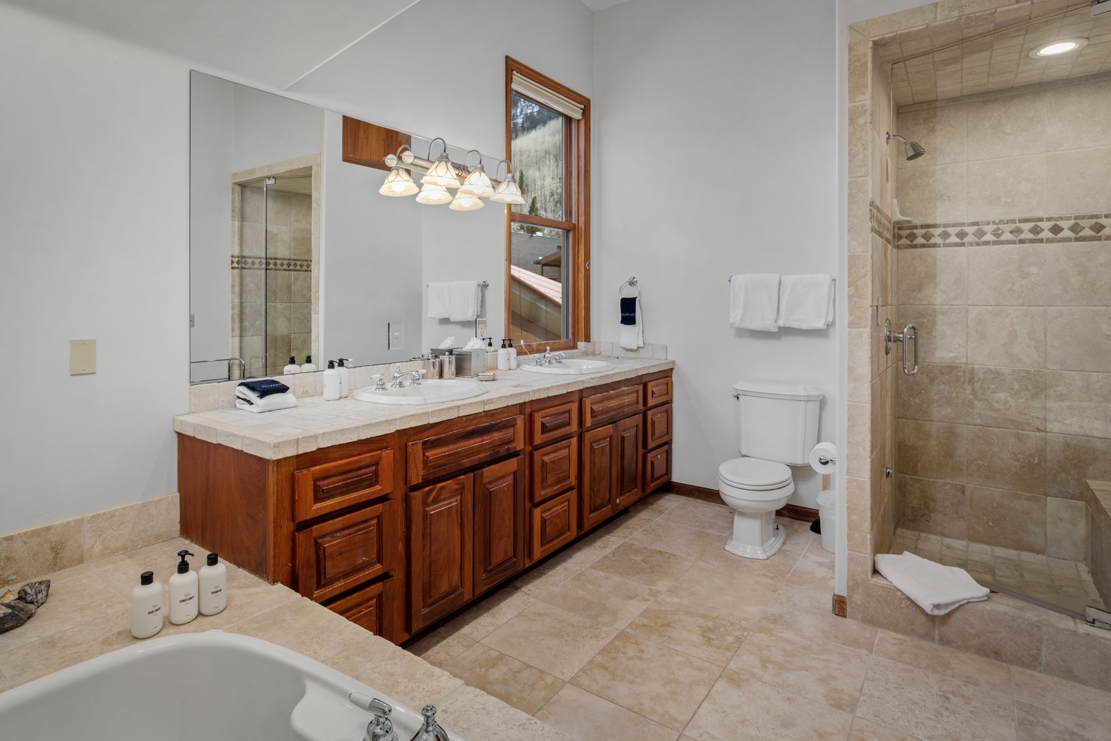 Primary bathroom - Steam shower, jetted tub and double vanity