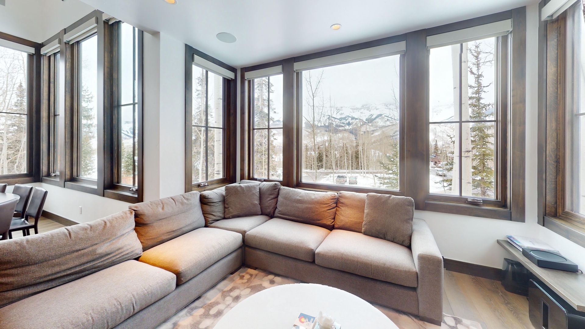 Have stayed there many times. Has the feel of someone’s home, not a rental. Appliances, furniture, bathroom fixtures etc. all modern and high quality. Well stocked with supplies. Everything you need. AMAZING views from main living/dining room through wall to wall windows. Great round table for 10? with lazy Susan for meals. Prime location. 2 min walk to market and gondola. And 1 min walk to double cabin run down to sunshine lift. Can’t ask for anything better.