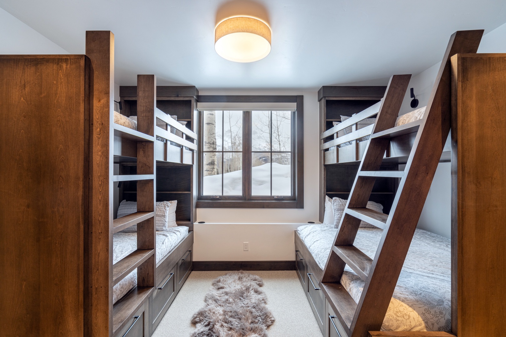 With four full bedrooms, including a bunk room accommodating five children or four adults, three additional king-sized suites with en suite bathrooms, and a Tempur-Pedic pullout downstairs, there's abundant space for your entire group. The home is equipped with amenities such as a gas fireplace, SONOS sound system, in-ceiling speakers, high-speed WiFi, whole-home humidification system, and smart TVs throughout, ensuring a comfortable and technologically advanced stay. Outdoor enthusiasts can relish the patio with a gas BBQ grill or unwind in the private six-person hot tub.
