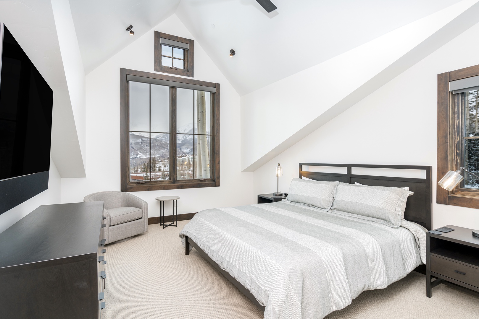 by An N.We stayed during the Telluride Autumn Classic. This is a beautiful home in a fantastic location, tucked up in Mountain Village, above the town of Telluride. We rode the gondola to/from town. There is a market across the street from the house, which was very convenient. Beautiful views from the living room and dining room. Nice sound system to connect to from your phone. The house has a kitchen that is well stocked with pots and pans, plenty of utensils for cooking, cutlery, plates, cups. It's a cook's kitchen. The beds in the bedrooms are very comfortable with nice linens. The bathrooms are modern and clean.