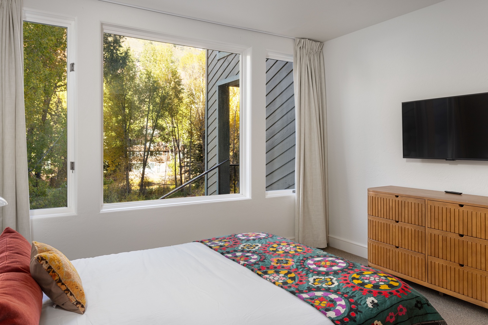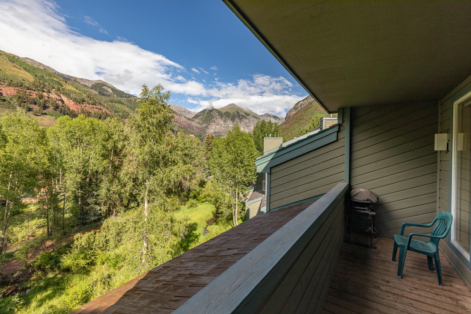 Riverside E2 - Telluride Town Lodging! This expansive townhome boasts four bedrooms, each with its own ensuite bathroom plus an additional half bath. Nestled beside the San Miguel River and its scenic walking trail, this home enjoys a prime hillside location offering panoramic views of the town, red rock formations, the river, and the Ajax peaks up the valley. Just a few blocks from the main street, its convenience is matched by its charm.